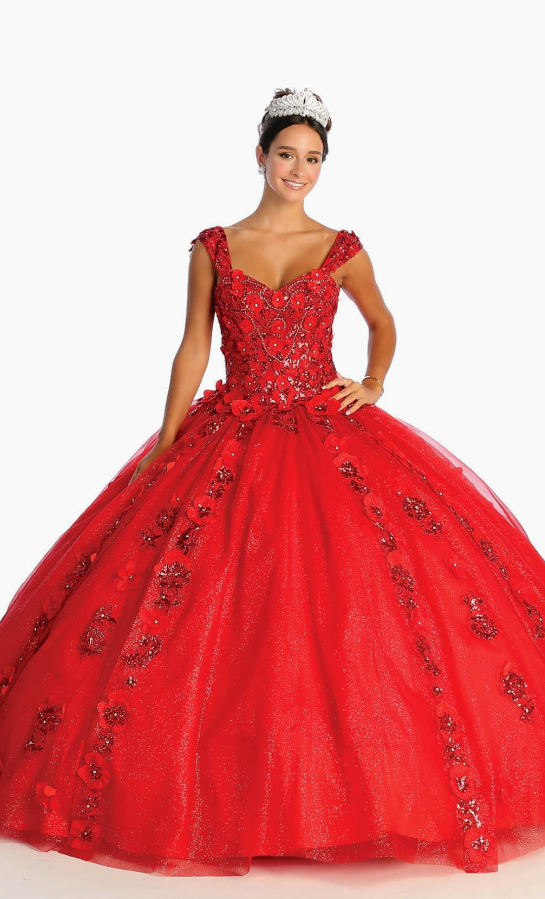 Consiéntete con el máximo lujo con nuestro vestido LK171. Con un escote corazón y una impresionante silueta de gala, este vestido de quinceañera está diseñado para hacerte sentir como una reina. Adornado con flores tridimensionales, pedrería, apliques y lentejuelas, le da un toque de opulencia. Personaliza tu look con un tirante ostentoso y un corsé en la espalda. Siéntete como una auténtica VIP en rojo.