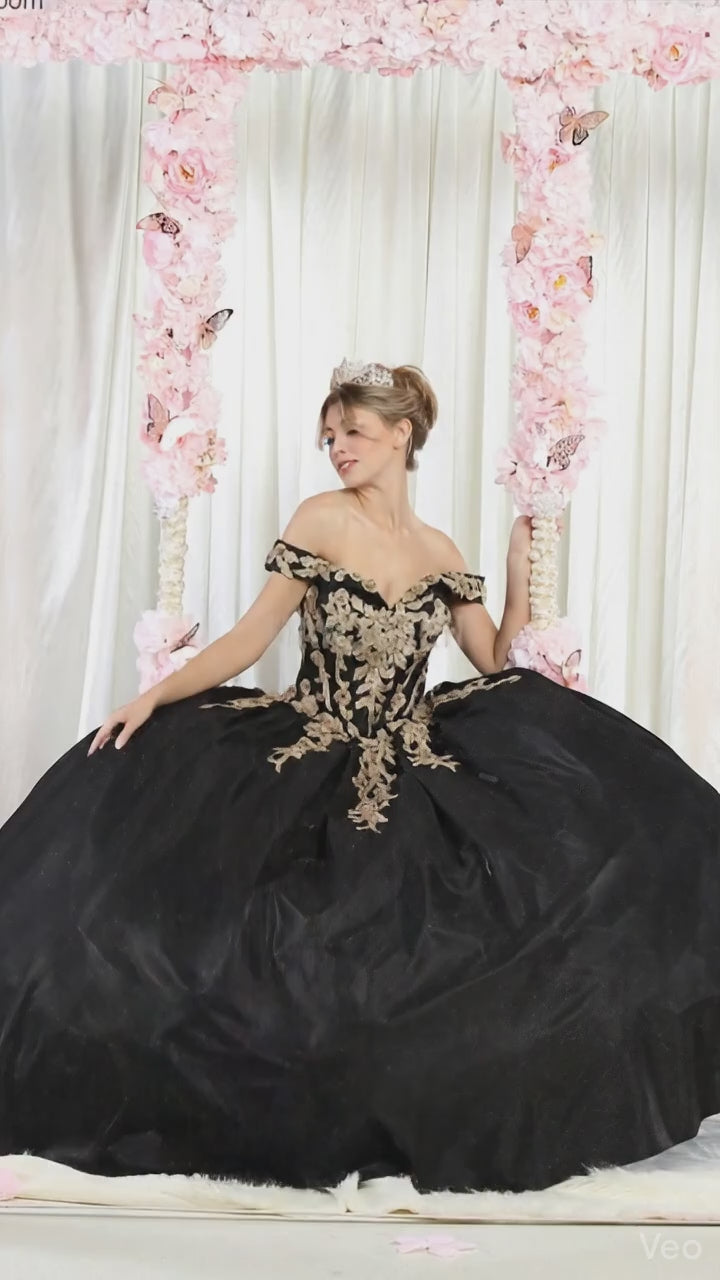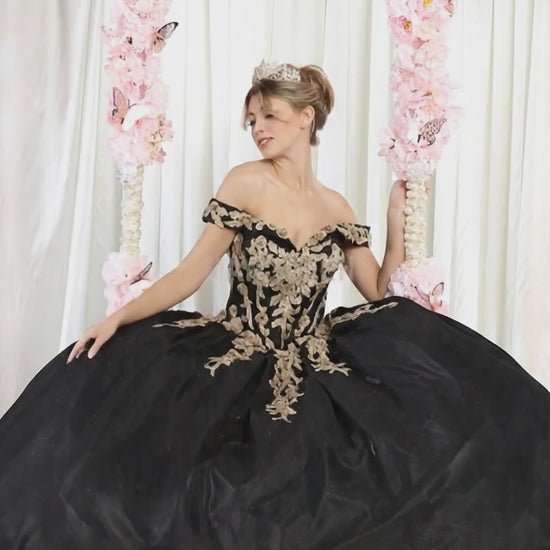 Realza tu presencia formal con este impresionante vestido de gala con un escote corazón que deja los hombros al descubierto y que irradia elegancia atemporal. Confeccionado en un lujoso negro con llamativos detalles dorados, el vestido luce intrincados apliques, lentejuelas brillantes y delicados bordados. La voluminosa falda crea una silueta impactante, perfecta para galas, bodas y eventos de etiqueta. Cada detalle ha sido cuidadosamente diseñado para que llames la atención con una refinada sofisticación.