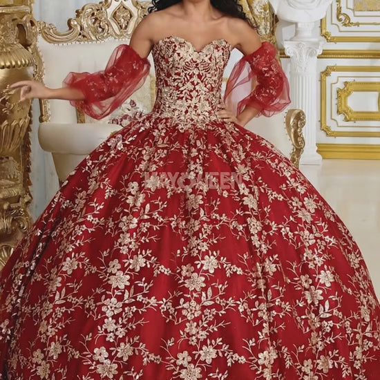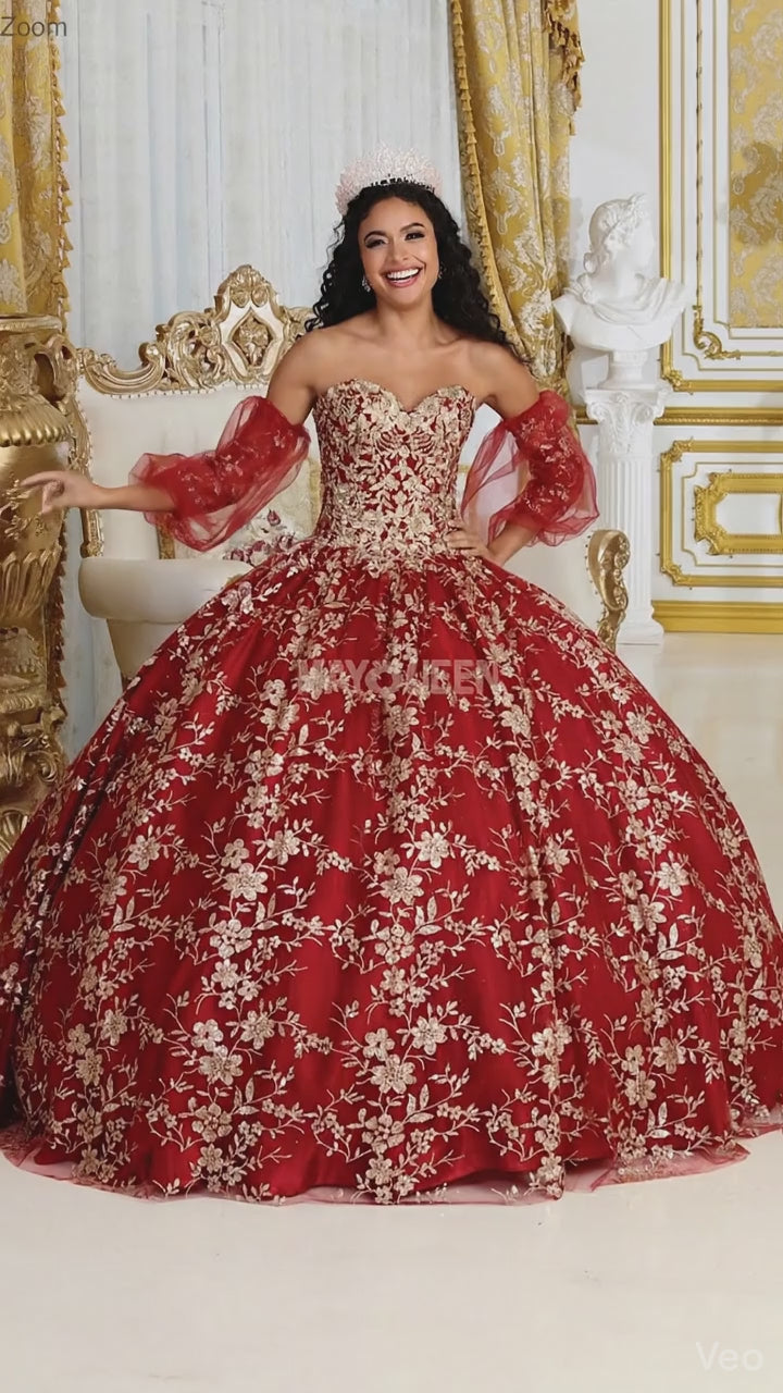 Luce una entrada inolvidable con este impresionante vestido de gala sin tirantes. La rica paleta de burdeos y dorado se realza con delicados adornos florales que caen en cascada sobre el corpiño y la falda. Con un bustier estructurado con espalda de corsé para una silueta favorecedora y una sujeción superior, este vestido ofrece versatilidad con mangas desmontables para múltiples opciones de estilo. Perfecto para galas, bodas y celebraciones formales donde la elegancia atemporal es primordial.