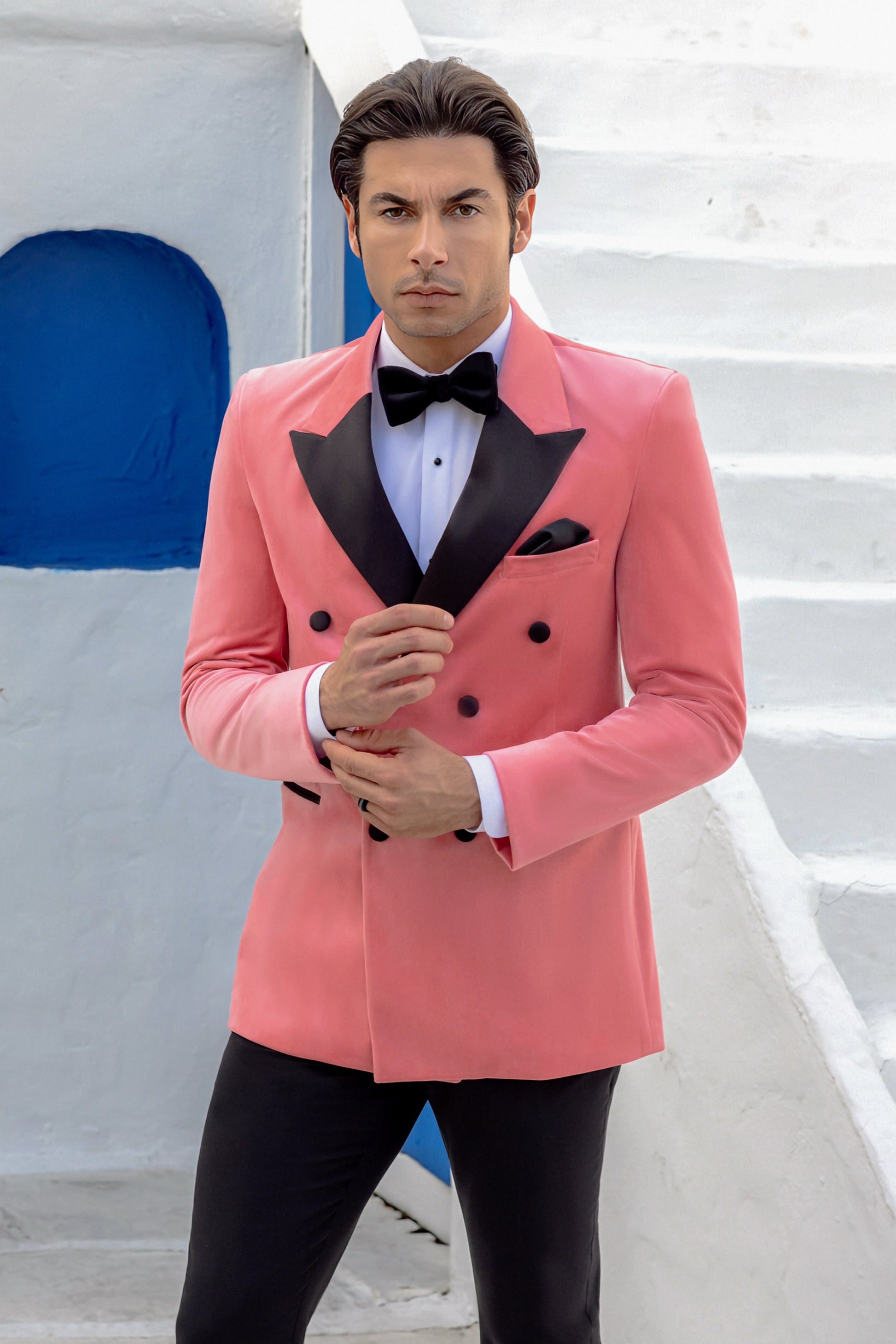 Eleva tu estilo formal con esta chaqueta cruzada de terciopelo, que presenta un sofisticado diseño de 6 botones y está confeccionada en un lujoso tejido de terciopelo. Su elasticidad en cuatro direcciones garantiza una comodidad excepcional y una gran libertad de movimiento, mientras que la solapa de pico le añade un toque distinguido. Disponible en una variedad de colores intensos, esta chaqueta combina a la perfección la elegancia clásica con la flexibilidad moderna para lograr un look refinado en cualquier evento.