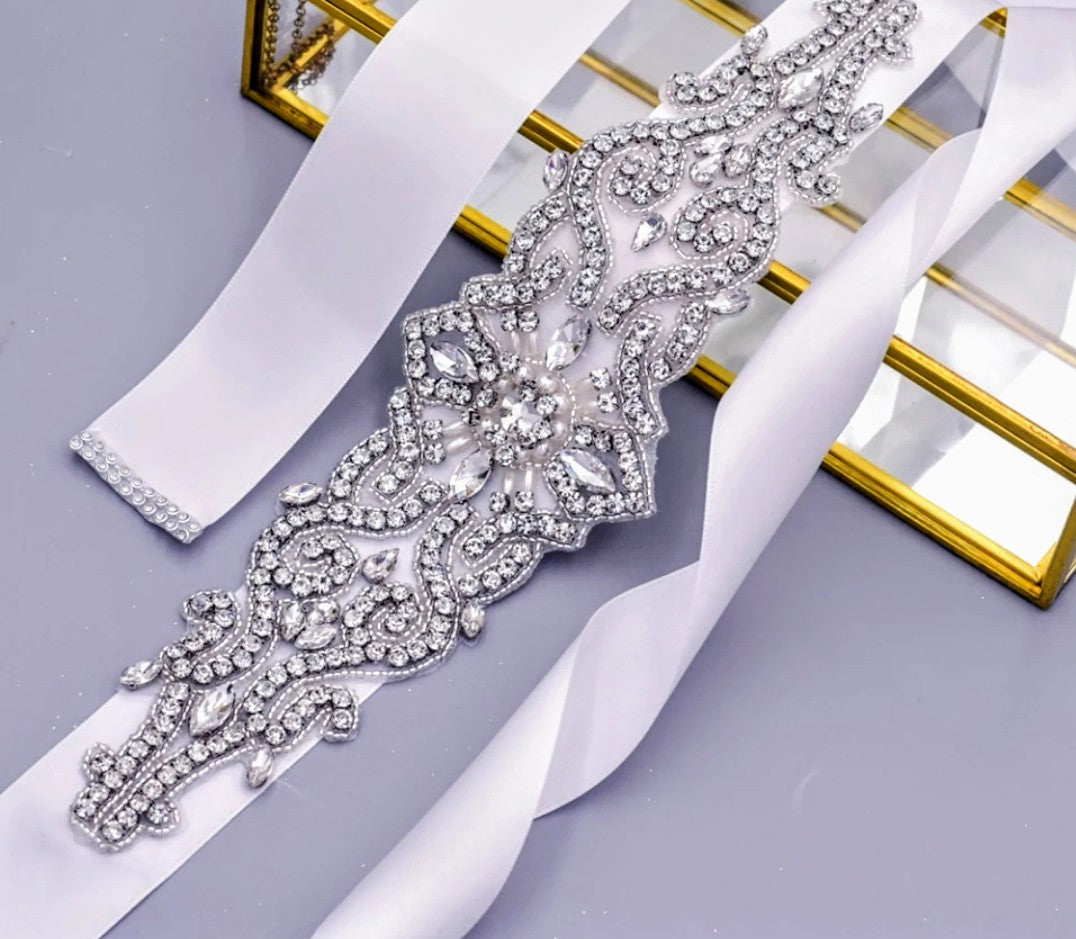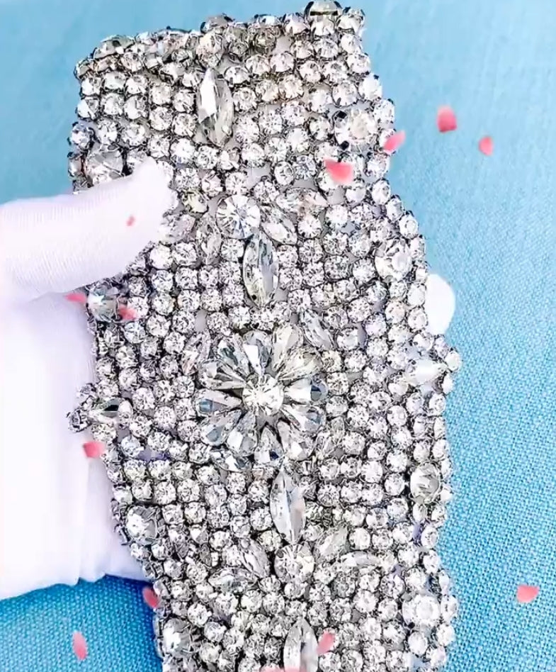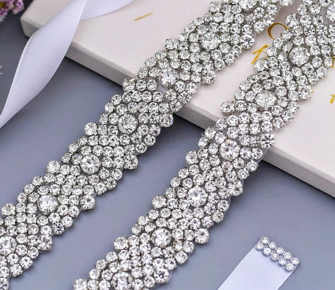 These stunning rhinestone belts will take your breath away and add sparkle and elegance to any dress. Simply tie around waist with the ribbon provided or attach rhinestone applique directly onto the dress.